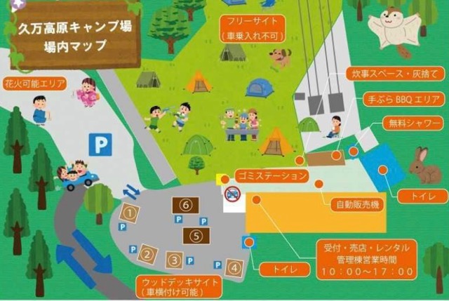 キャンプ場は冬場はスキー場の為、斜面が多くフリーサイトはテントの張れるエリアは限られてしまいますね。