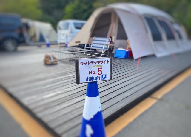 僕達のウッドデッキサイトは完全に独立したサイトなので車は横付けできますし、予約さえできれば場所取りの心配もない、雨が降ってもウッドデッキ上なので排水が良く、グランドシートも汚れない、等の利点はありますがロケーション的にはやはりフリーサイトの方がキャンプ感はありますね。
