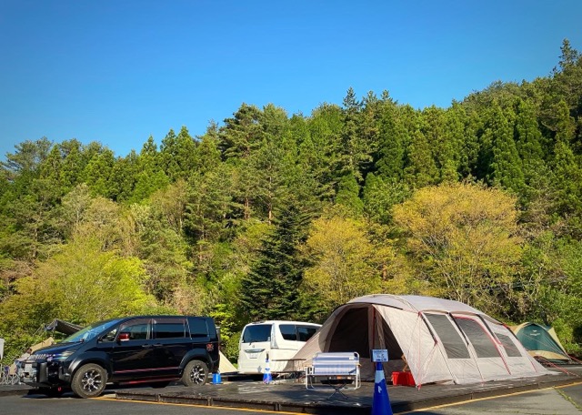 GWですが、まだ営業開始からまもないのでそこまで混雑せずに皆さん平らな場所にテントを設営されていました。