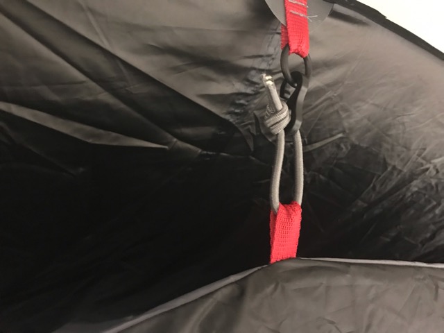 他のテントの吊下げ部は「クッションコード」で適度に伸縮する為に取り付けが非常に楽ちんなのです。