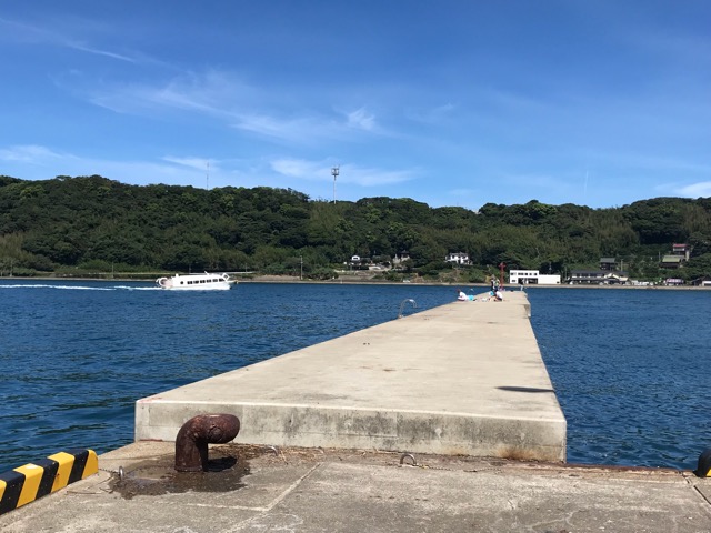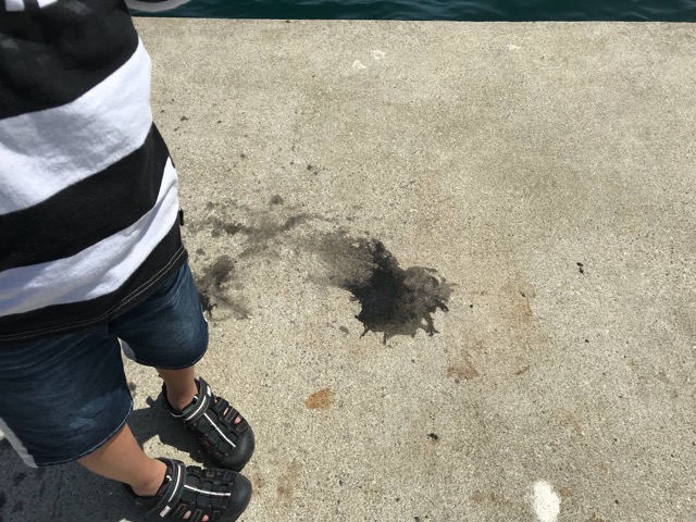 近くに波止があり釣り人が数名いるので息子と見に行くとイカのスミ跡が…