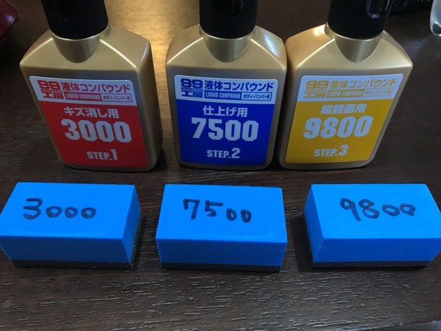 因みに「コンパウンドトライアルセット」は磨き用のスポンジが3種類 番手毎に付いていますので使用前にマジックでスポンジを専用化しました。