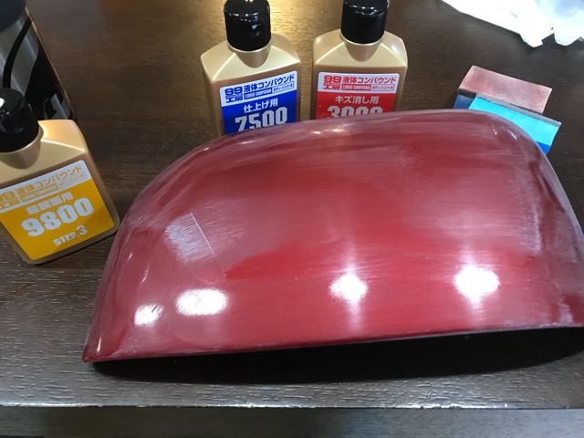 ここで中研ぎすると艶が消えてしまうのでいよいよ「コンパウンド」の出番です。