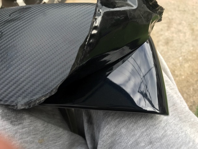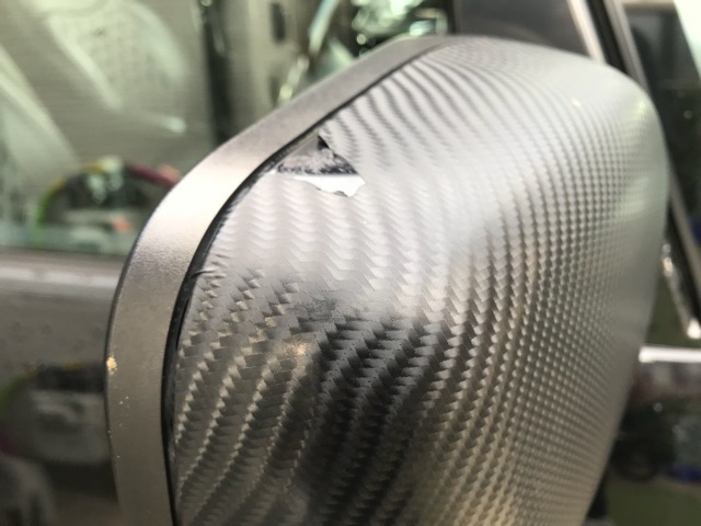 ミラーカバーが外れたらとりあえず今まで貼っていた「4Dカーボンシート」を剥がします。