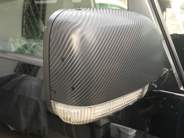 僕のデリカはブラックなのですがミラーカバーは「4Dカーボンシート」でラッピングしていました。