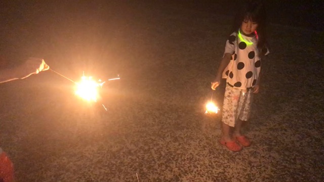 駐車場には数組の家族が花火をしていましたので我家もその近くで花火をします。