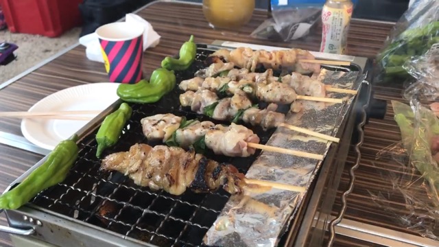 再び蓋を締めて 残り僅かなスモークウッドが燃え尽きるのを焼鳥を焼きながら待ちます。
