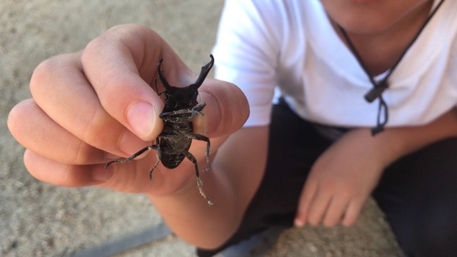 さっそく捕まえて息子に渡します。