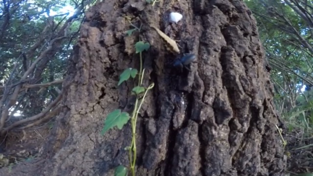 樹液の出ている箇所をよく見てみるとカブト虫はいませんでしたがコクワガタのオスを発見。