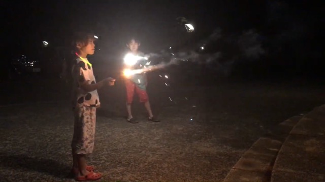 お風呂上がりには子供達が楽しみにしていた花火をします。
