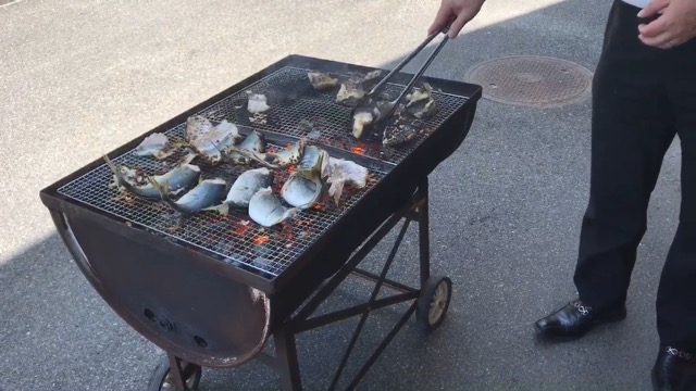 BBQを楽しんでいるとスタッフさんが先程獲れた魚達を炭火で焼いてくれています。