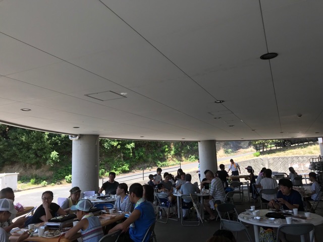 ある程度魚達を捌き終わると再びバスに乗りウェルネスパーク五色まで戻り「ゆ〜ゆ〜ふぁいぶ」横のBBQテラスでBBQが始まります。