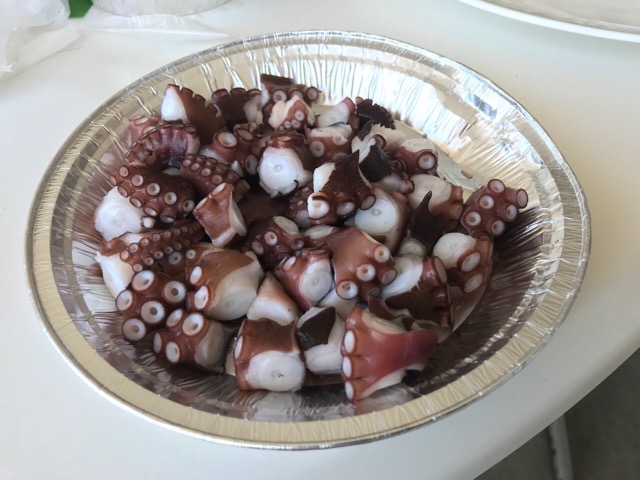 タコはボイルされた物をぶつ切りにして各テーブルに配って頂けました。