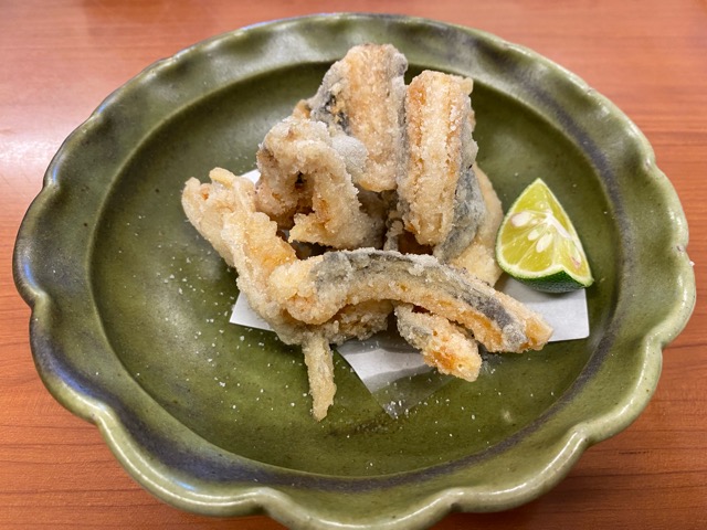 そんな美味しい定食を食べ終わると続いては先程の「あなご」が唐揚げになってやってきました。