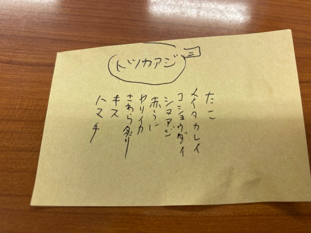 お造りの横に配置と種類を書いたメモを添えてくれているのは非常に親切。