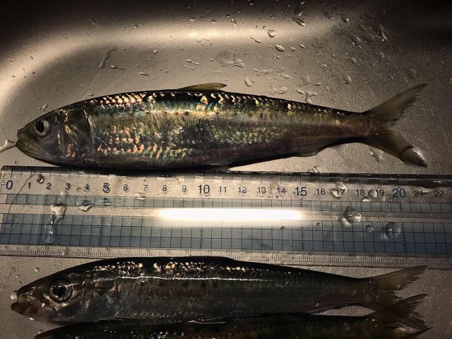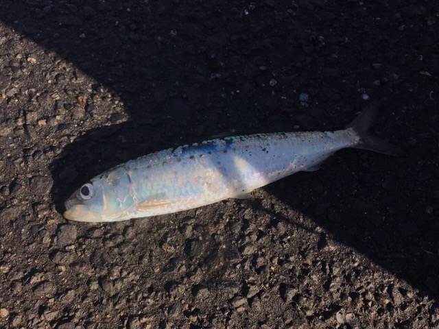なんとか20cm程度のマイワシを取り込めましたがやはり竿が柔らか過ぎなようですね。