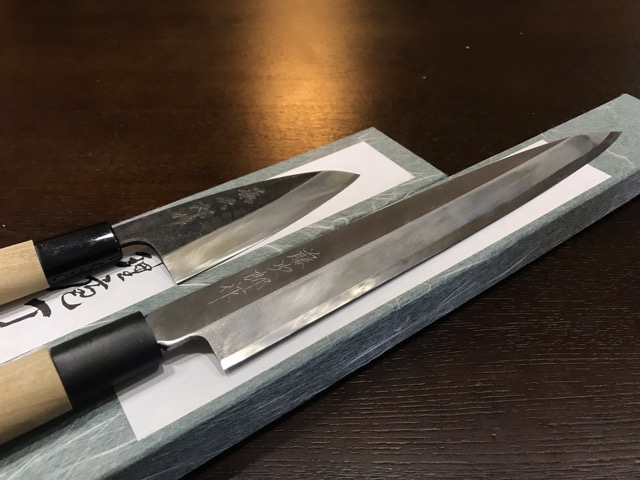 年末に新調した白紙鋼の「鯵切包丁」と「刺身包丁」。