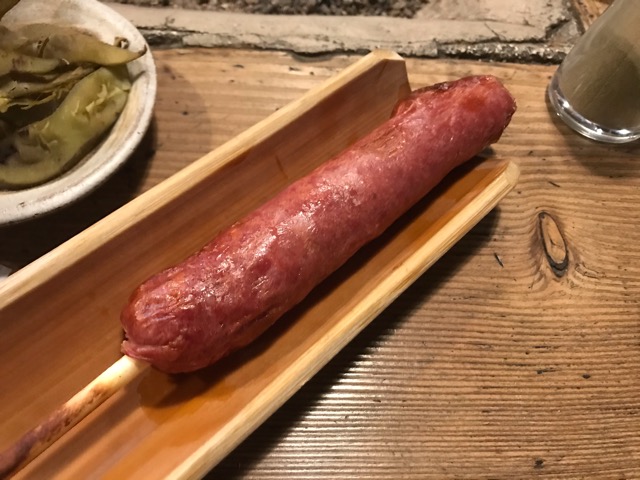 見た目はよくある「フランクフルト」ですがとても肉々しい。物凄く野性味溢れる味です。