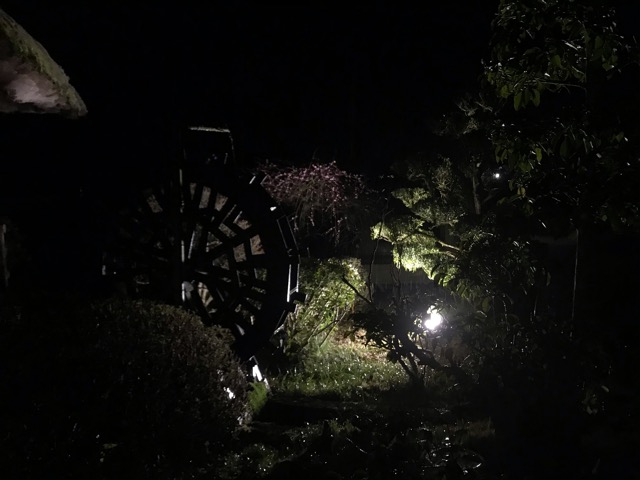 入口では「水車」が回り「猪」の剥製が出迎えてくれます。