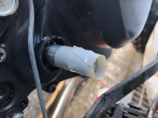続いて新しいオイルシールを挿入するのですがシャフトのギザギザで新品のオイルシールが傷付かないようにテープで養生。