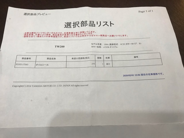 車体番号を打ち込めば純正部品のパーツリストがWebで見れて値段もわかる。