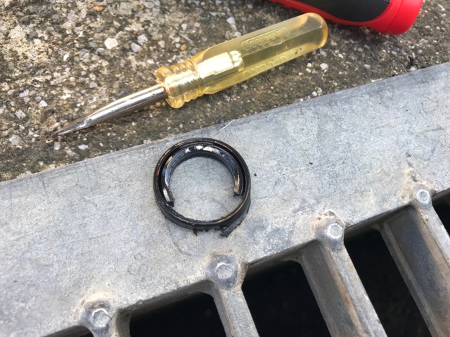 諸先輩方のブログをいろいろと参考にさせてもらい、オイルシールを小さなマイナスドライバーでこじって外そうとするのですがなかなかうまくいかない…。