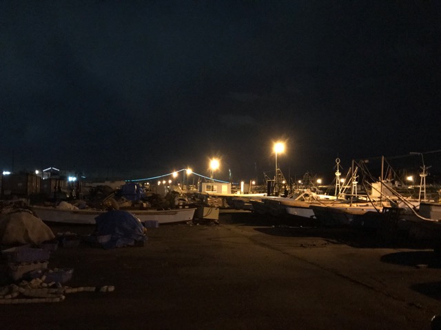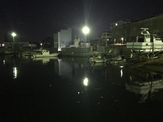 外向きのテトラが良さそうな感じでしたが風も強く暗いのでまたまた初心者の僕達は内側の船着場で釣り開始。