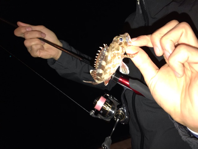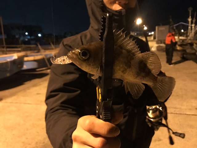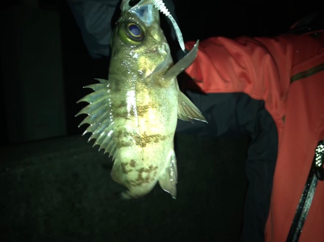 少し小さいサイズではありますが見事に「初メバルプラッキング」でメバルゲット。