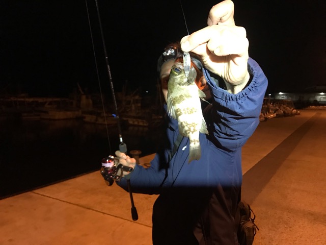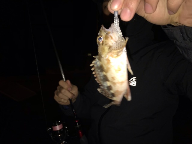 「ジグヘッド」に「ワーム」を付け、岸壁沿いの中層付近でチョンチョンと誘いを掛ける釣り方でした。