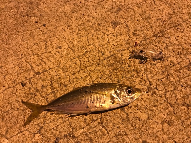 3.6cmもある表層付近のプラグにバイトしてくるとは中々勇敢な小アジ君です。