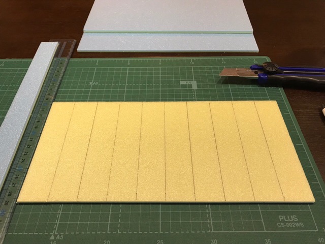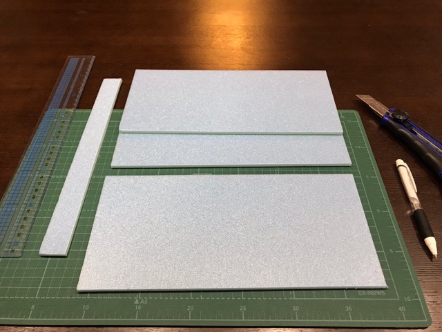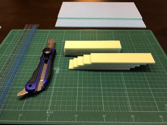 まずはカッターマットの上で「カラーボード 」140mm×30mmにカット。