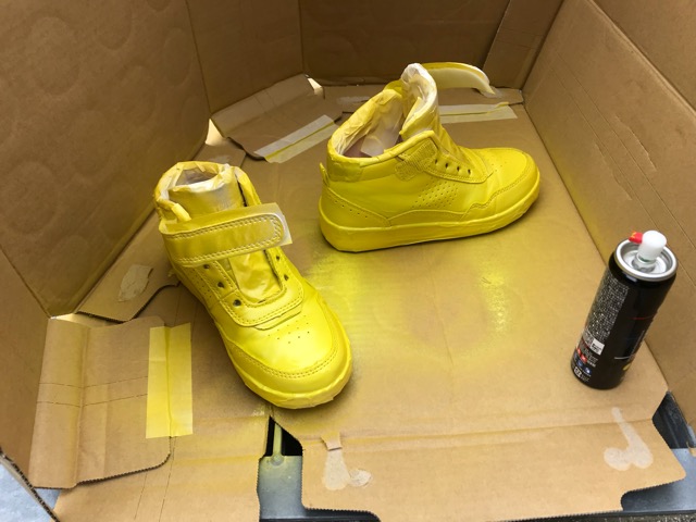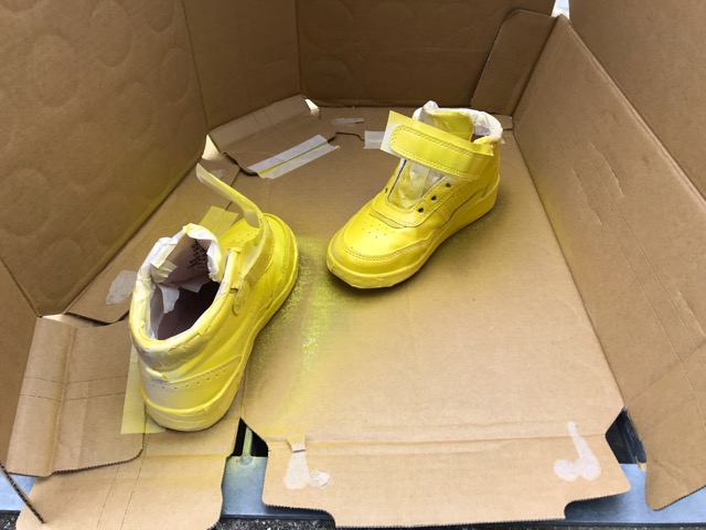 「染めQ」でスニーカーを黄色に塗装。細かい修正は「筆」で。