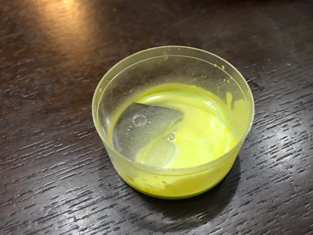 「塗り残し」はスプレー缶の残りを小さなプラスチック容器に噴き出して筆でタッチアップ。