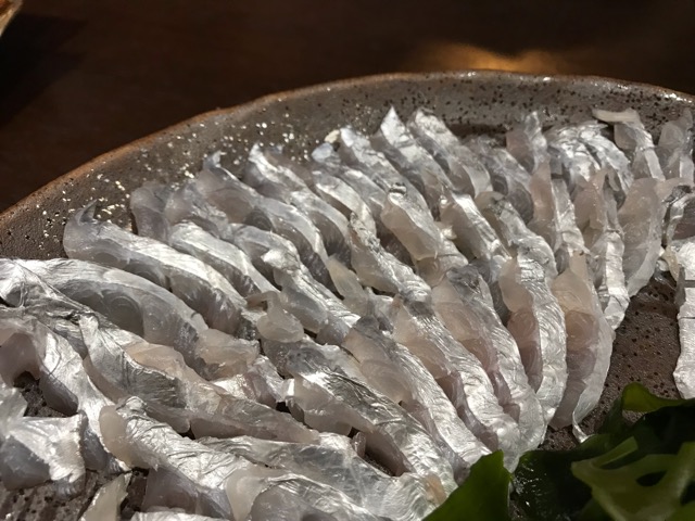 違いを感じる為に皮を炙らずに切れ目を入れた刺身、皮が気にならない程度に薄く切った薄造りも作ってみました。
