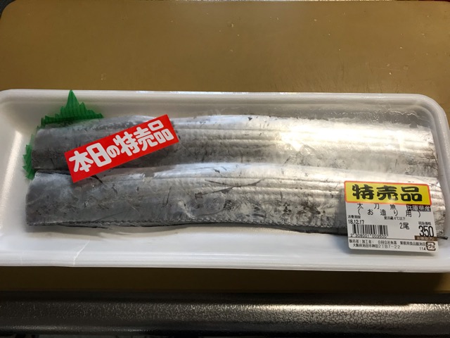 というわけにもいかず、スキルも時間も足りない事を悔やみながら近所のスーパーで太刀魚を買って来ました。
