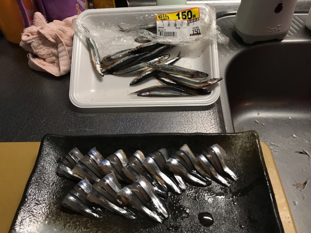 ついでではありますがお造り用の「キビナゴ」も150円で売っていたのでこちらも手開きにしてお刺身で頂きました。