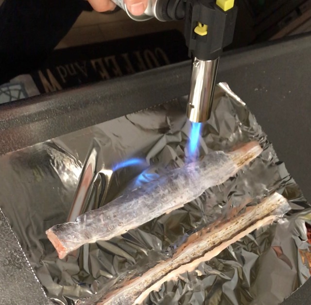 炭や藁では無くガスで炙ってもとても良い香りがつきますね。