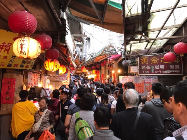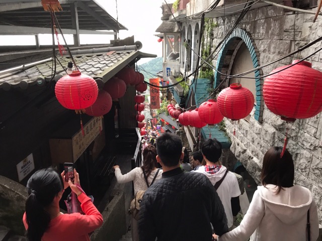 途中で海が見えるオウムがいるカフェで休憩し再び九份を散策。