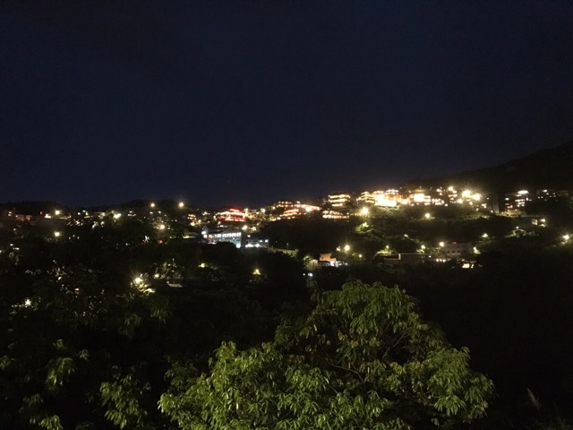さてタクシーでホテルに帰るのですが 九份からの帰りの山道でタクシーが停まります。