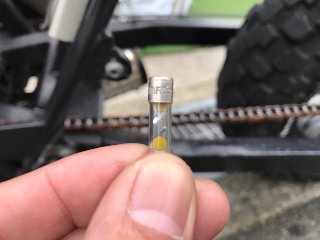 バッテリー交換をしたらセルでエンジンかかるかな?などと思いながらふとバッテリー横のヒューズボックスが目に留まり管ヒューズを確認してみると…