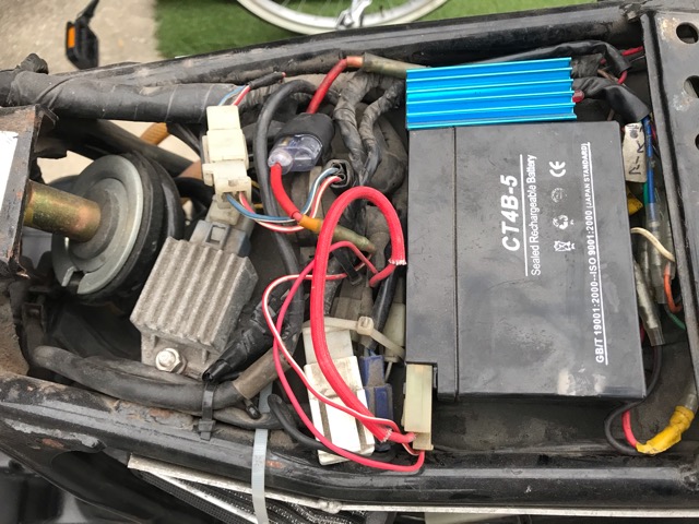 前オーナーの方からは「スカチューンですがバッテリーレスキットではなくミニバッテリーが付いています。」と聞いていたのですがバッテリーがダメなのかセルのボタンを押してもうんともすんとも言いません。