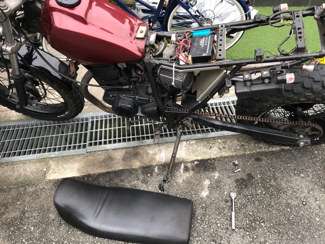 TWはシート裏の2本のボルトをフレームから外すだけでシート脱着ができるので楽ちんですね。