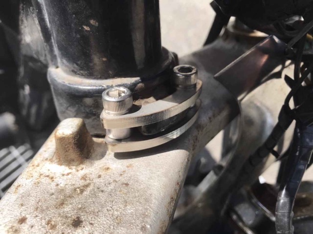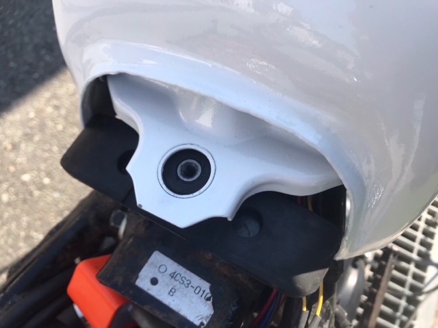 ストッパーを取り付けることでハンドルの左右の切れ角が少なくなるので目一杯ハンドルを左右にきってもタンクに干渉する事がなくなりました。