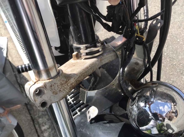 ハンドルを左右に切るとトップブリッジとフロントフォークがタンクに当たってしまいます。。