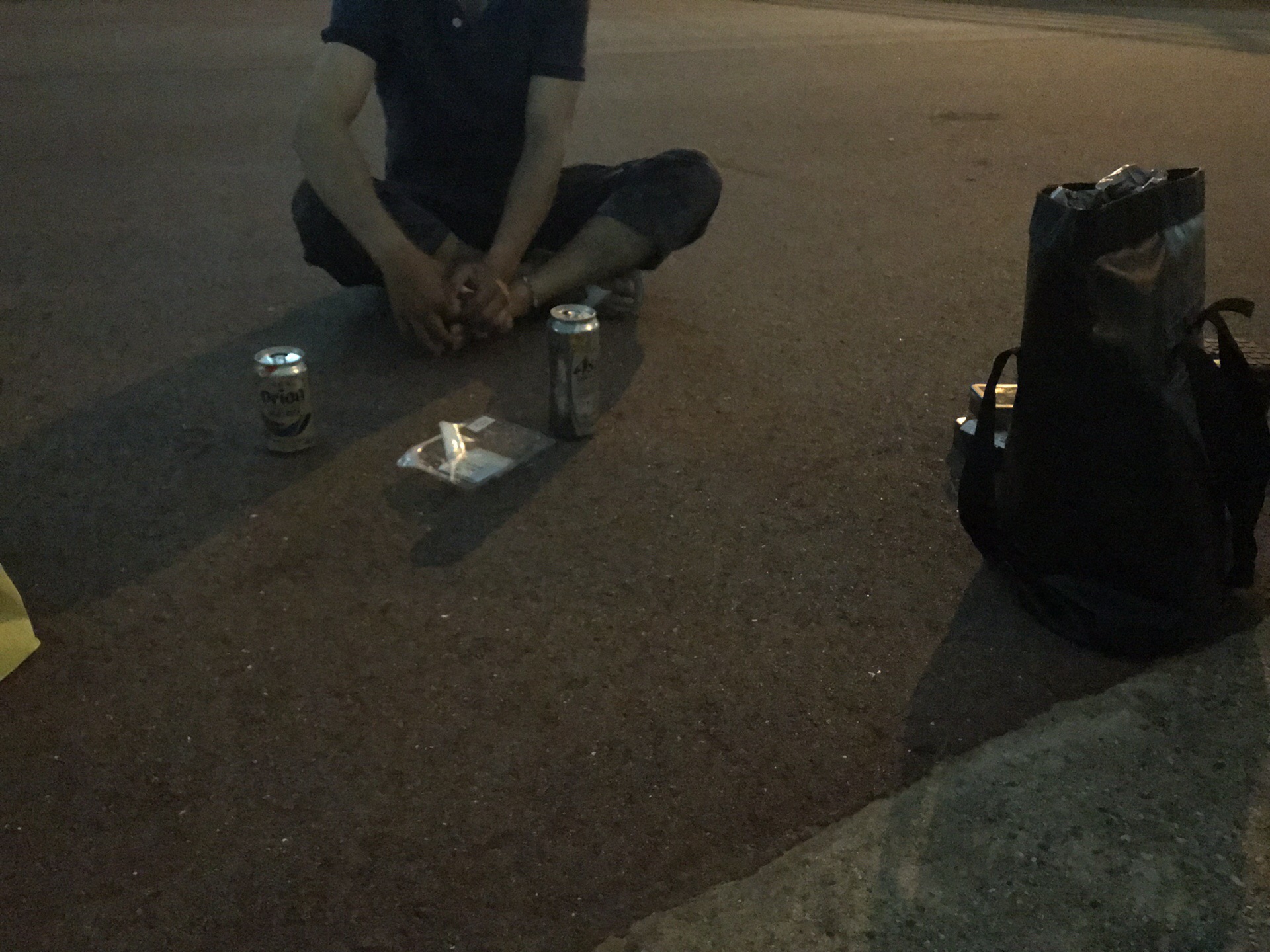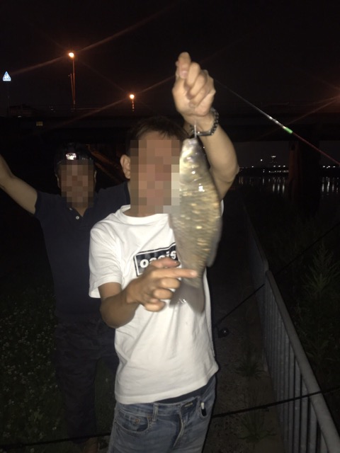 ビールを飲みながら30分ほど雑談をしていましたが中々釣れないものですから橋脚付近を陣取っていた3人組さんに話し掛けに行きましたが。