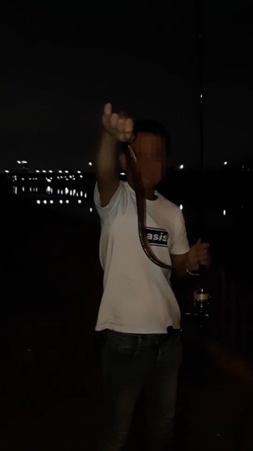 ゆっくりと巻き上げて見るとさっきよりも少しだけですが良型のウナギ。