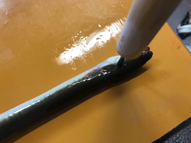 両目がある程度焼けたのでいよいよハケで「タレ」を付けていきたいとおもいます。