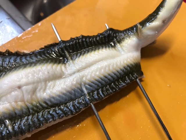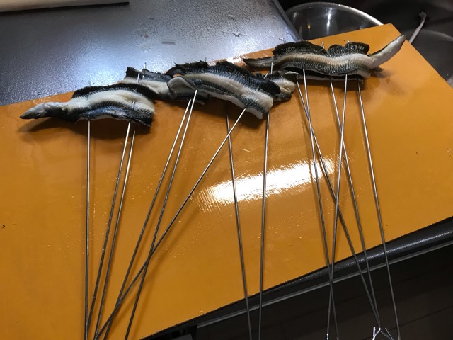 これでウナギを焼く準備ができましたので続いては焼き易い様に「串打ち」を。