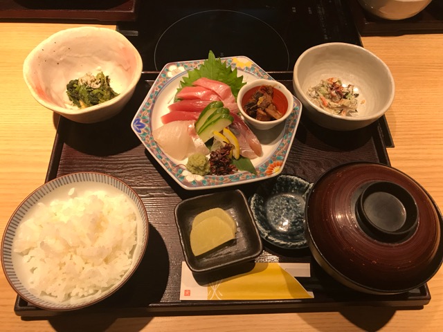 頼んだメニューは「近大マグロと選抜鮮魚のお刺身ご膳」2480円。