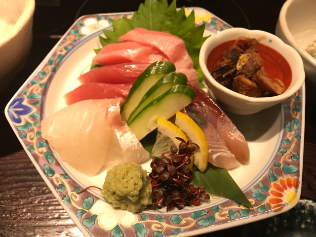お刺身は「マグロ(赤身。中トロ)、真鯛、ブリ」